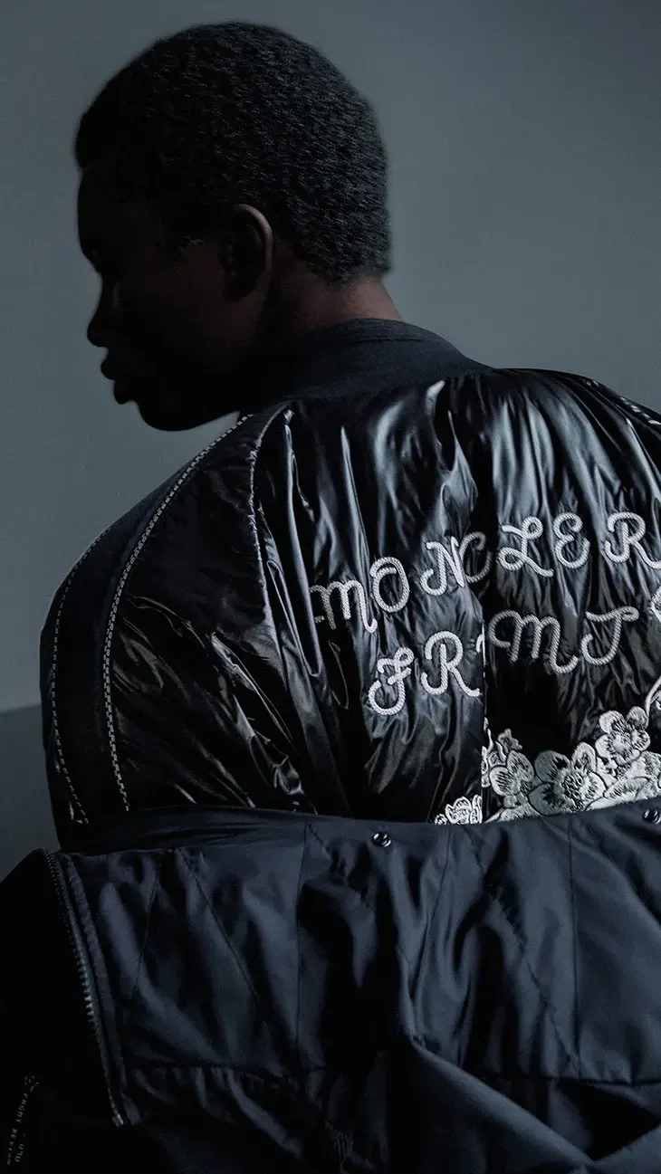 Moncler uses layering and shadows to mimic fabric textures.
