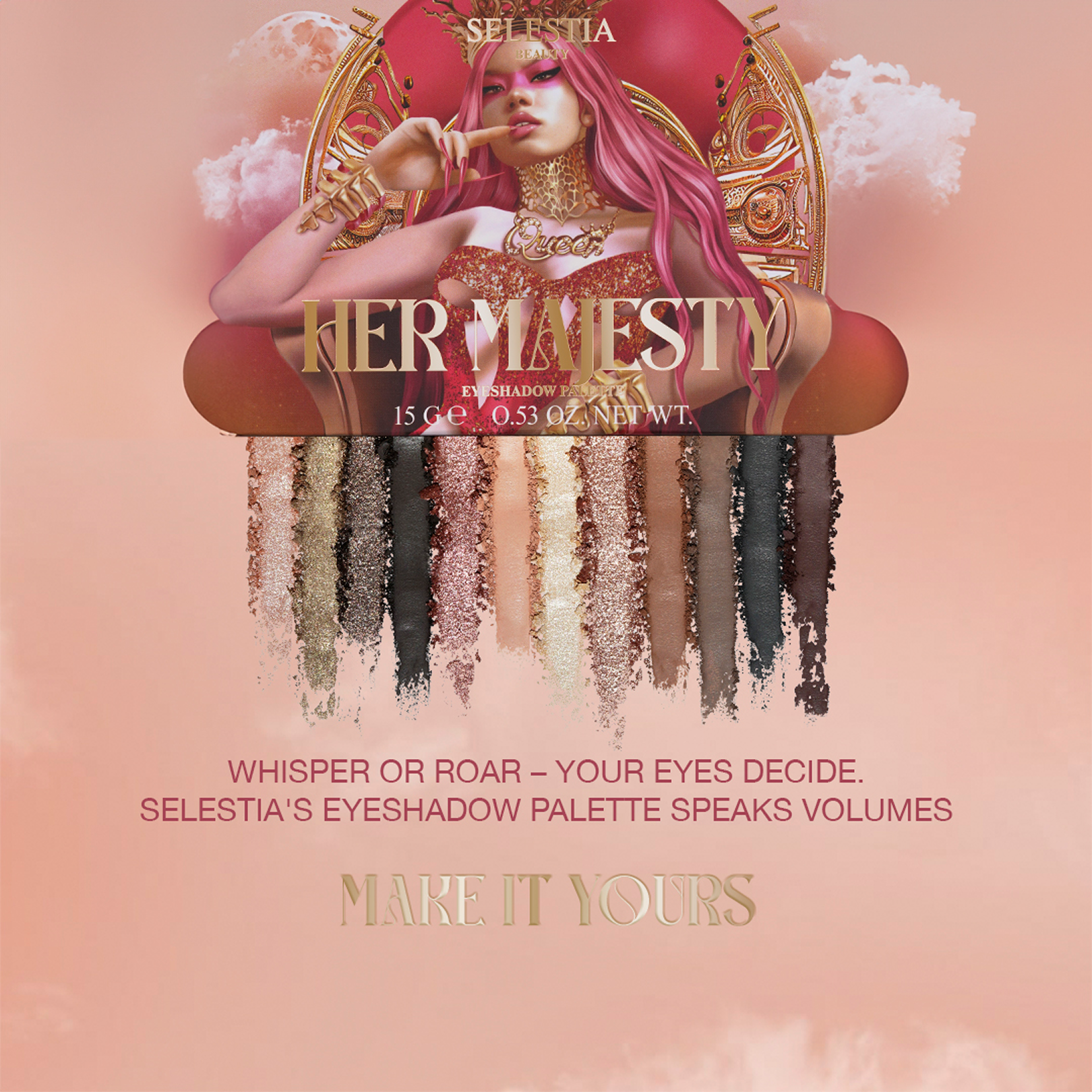 Our challenge was to strengthen the Selestia Beauty brand within the high-quality makeup segment. This is a relatively young brand with strong products and its own distinct visual style. Our mission was to increase its brand awareness. To achieve this, we focused on two key goals: